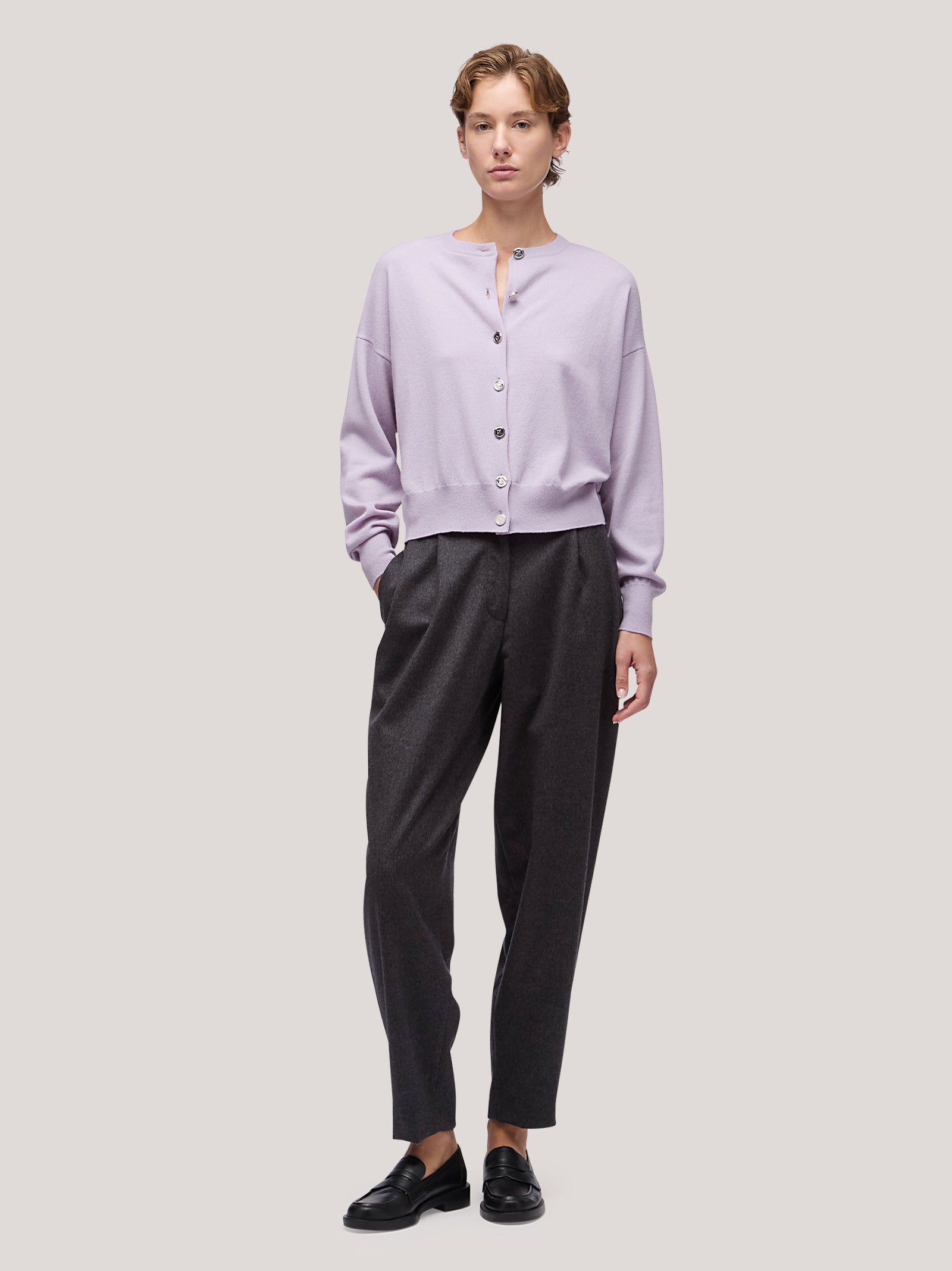 For maximum care and longevity of this garment, we recommend turning it inside out before washing, so that the surfaces of the fibers are delicately rubbed together. We then recommend washing it by hand, with water at around 30° and a neutral detergent, then drying it on a horizontal surface, without using the dryer, then ironing it at low temperature. It will then be important to collect it in the appropriate sealed bag with the addition of a mothproof product.