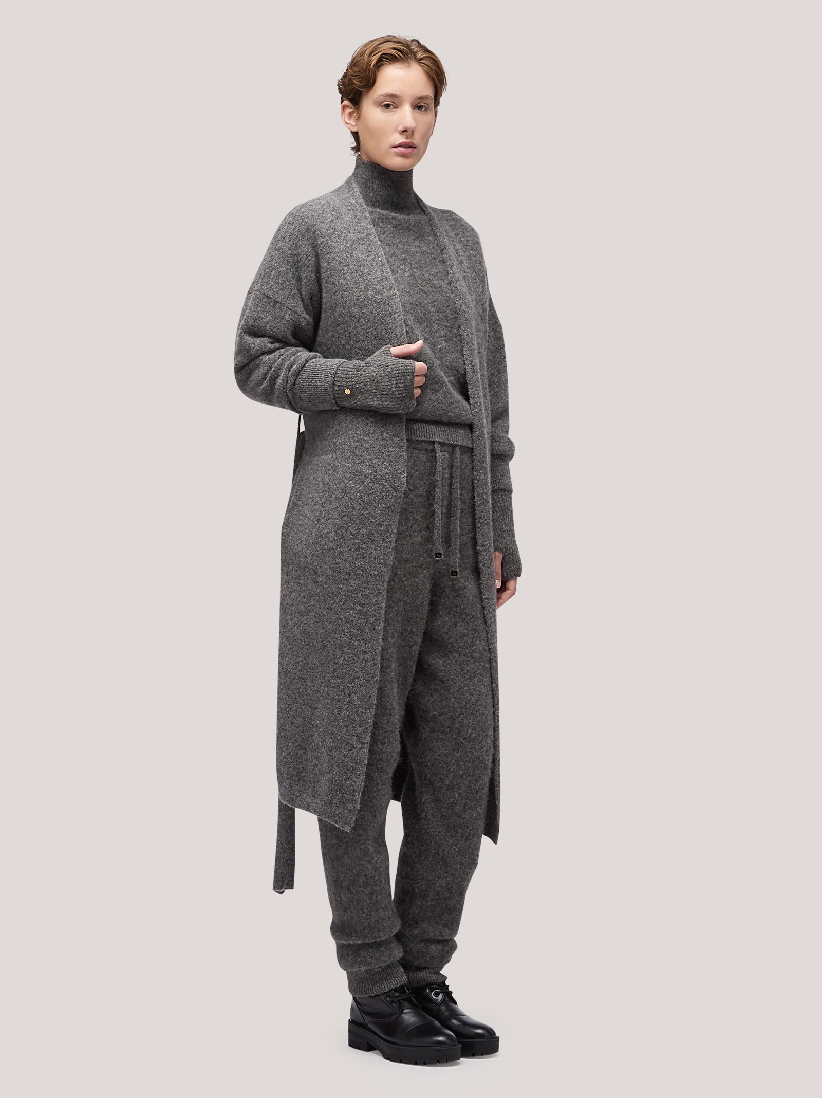 For maximum care and longevity of this garment, we recommend turning it inside out before washing, so that the surfaces of the fibers are delicately rubbed together. We then recommend washing it by hand, with water at around 30° and a neutral detergent, then drying it on a horizontal surface, without using the dryer, then ironing it at low temperature. It will then be important to collect it in the appropriate sealed bag with the addition of a mothproof product.