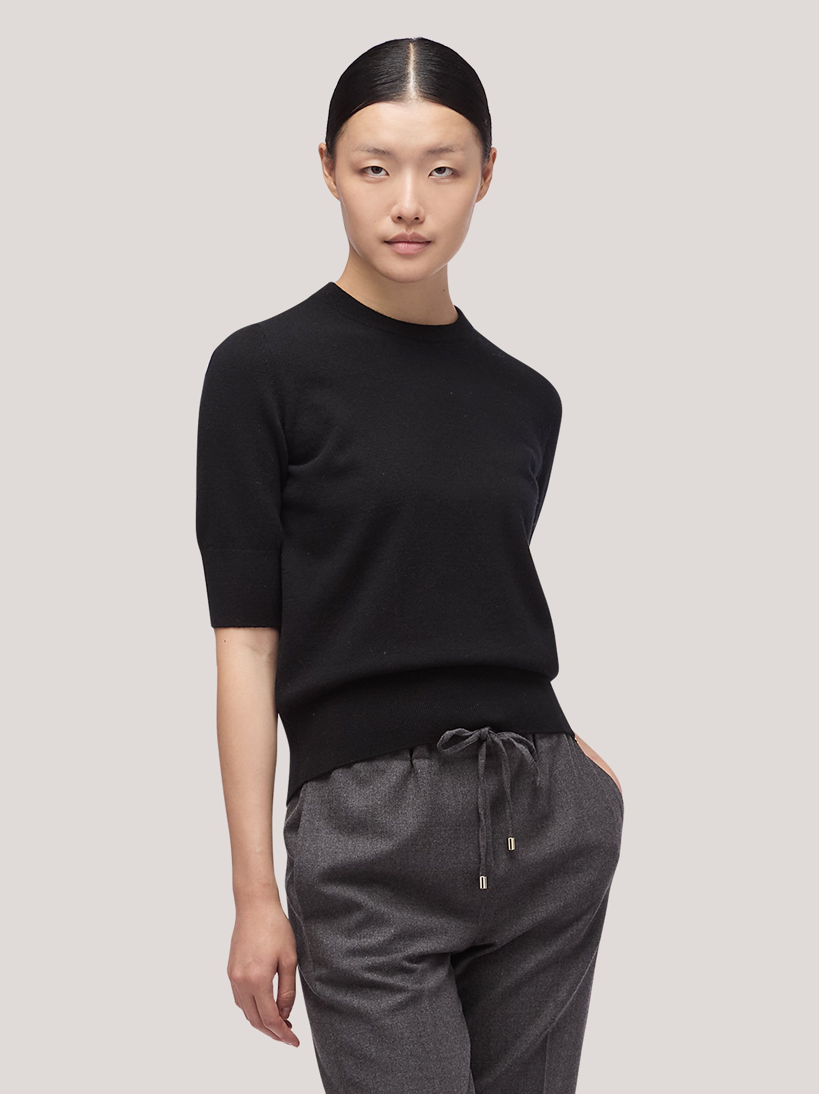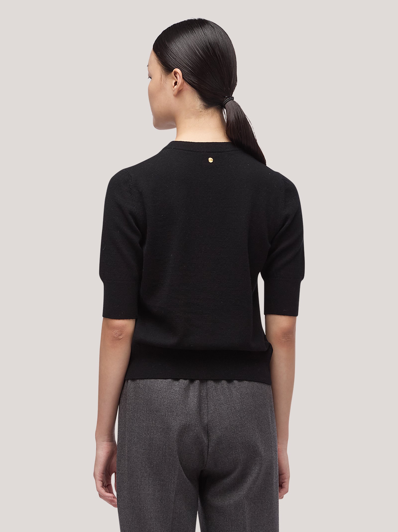 - Women's crew neck sweater with elbow-length sleeves and ribbed edges - black
