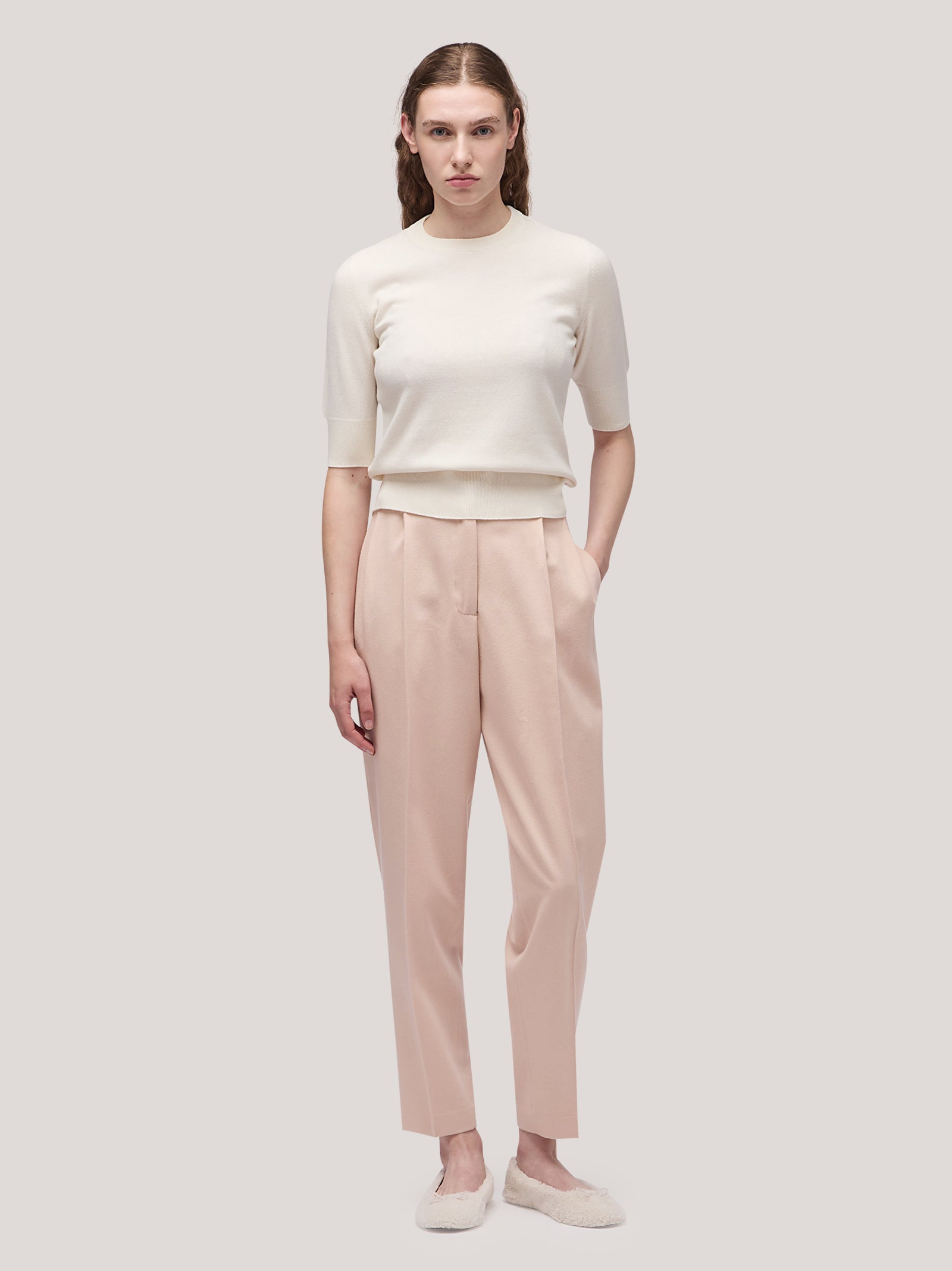 - Women's crew neck sweater with elbow-length sleeves and ribbed edges - pink