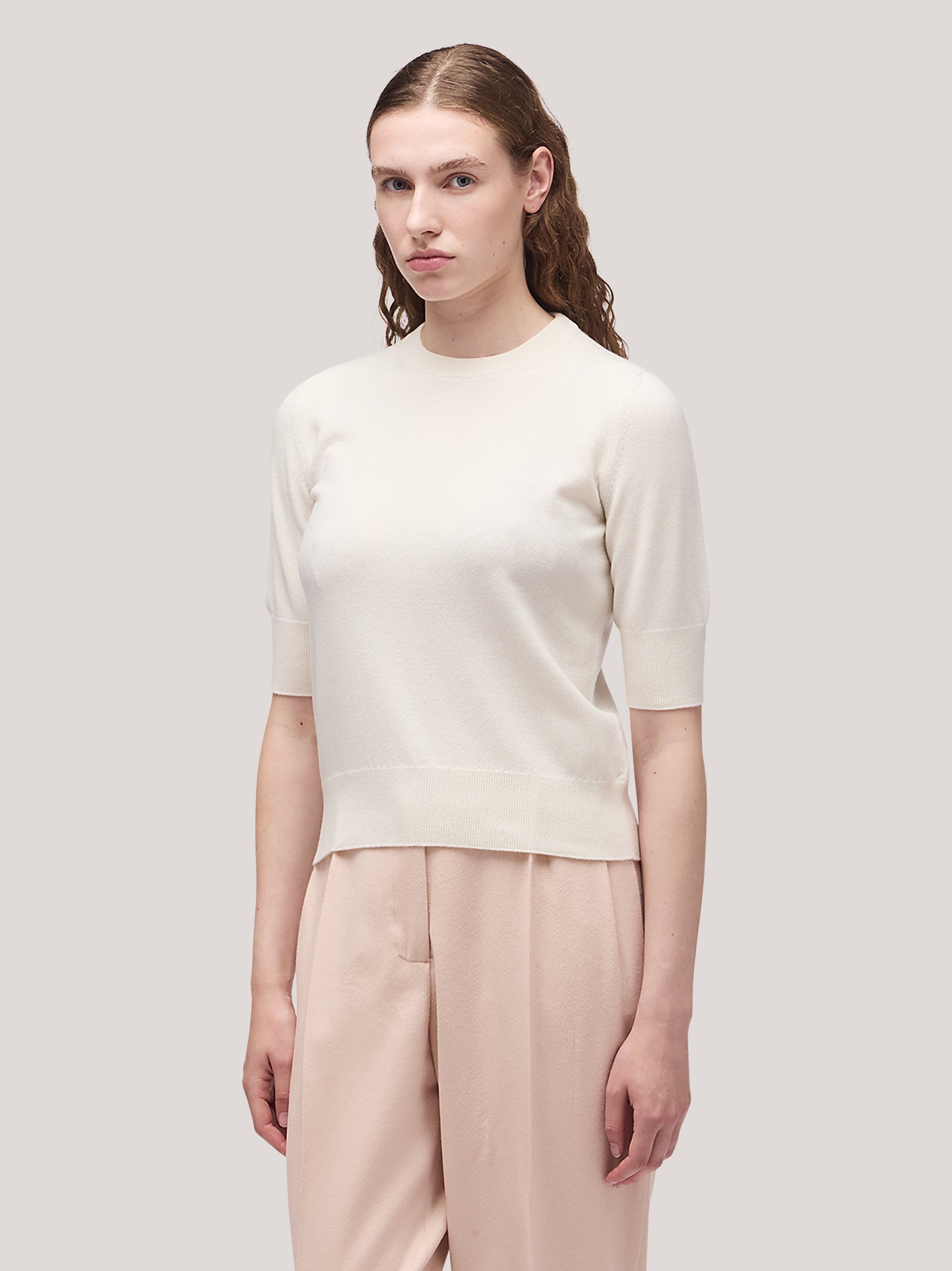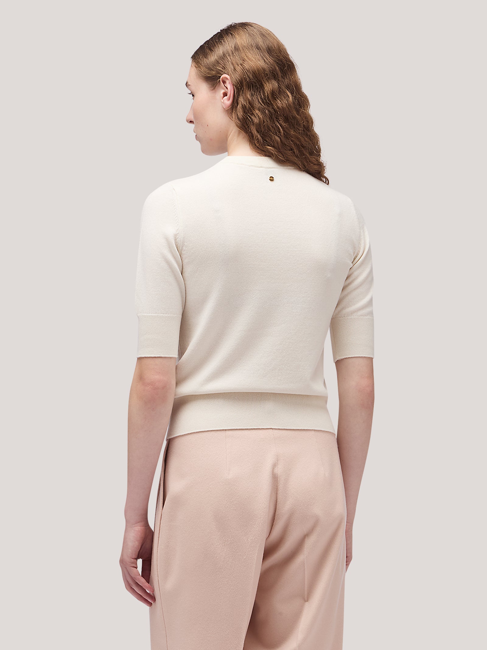 - Women's crew neck sweater with elbow-length sleeves and ribbed edges - white