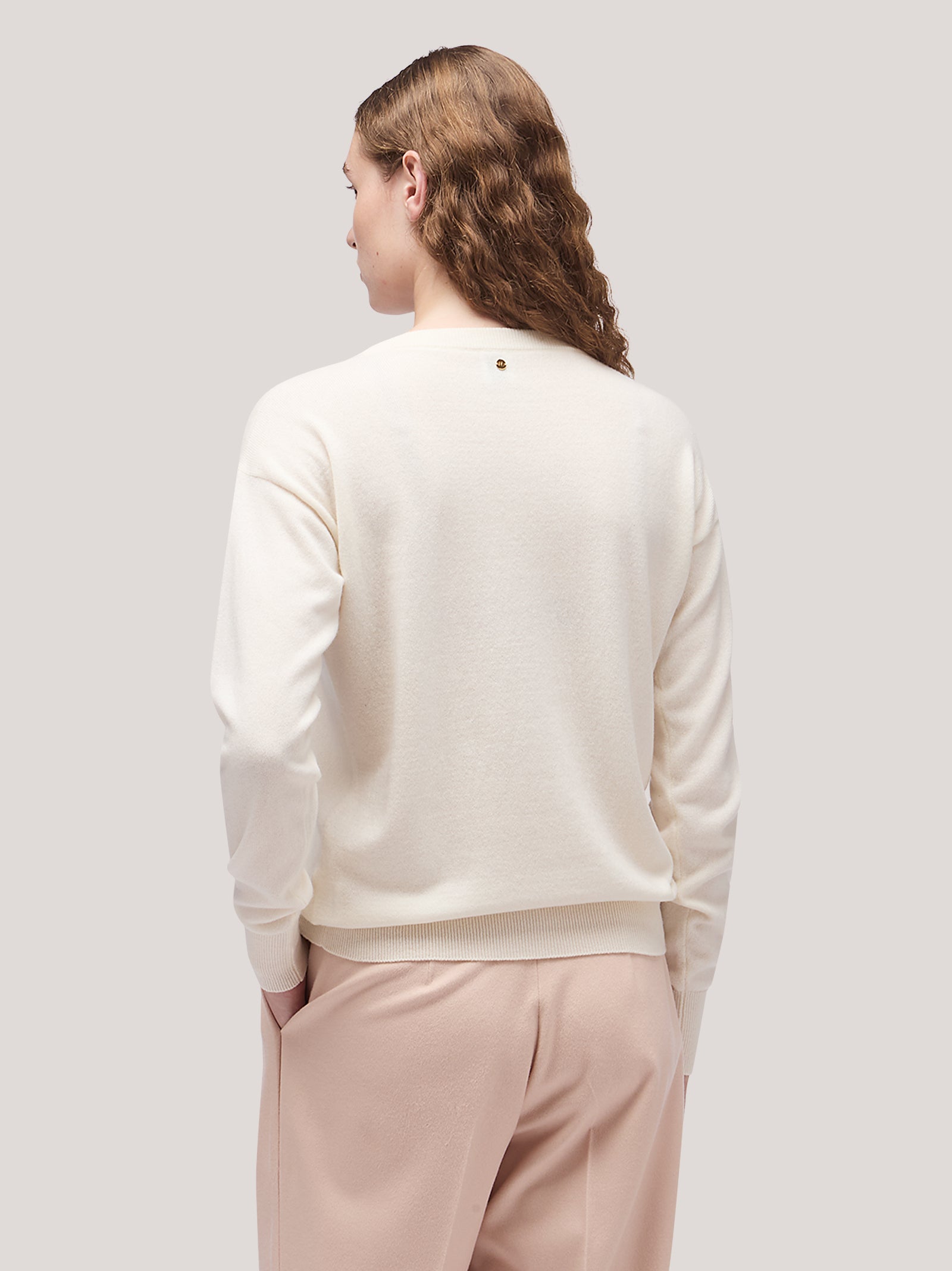 - Women's crew neck sweater with long sleeves, dropped shoulders and ribbed edges - white