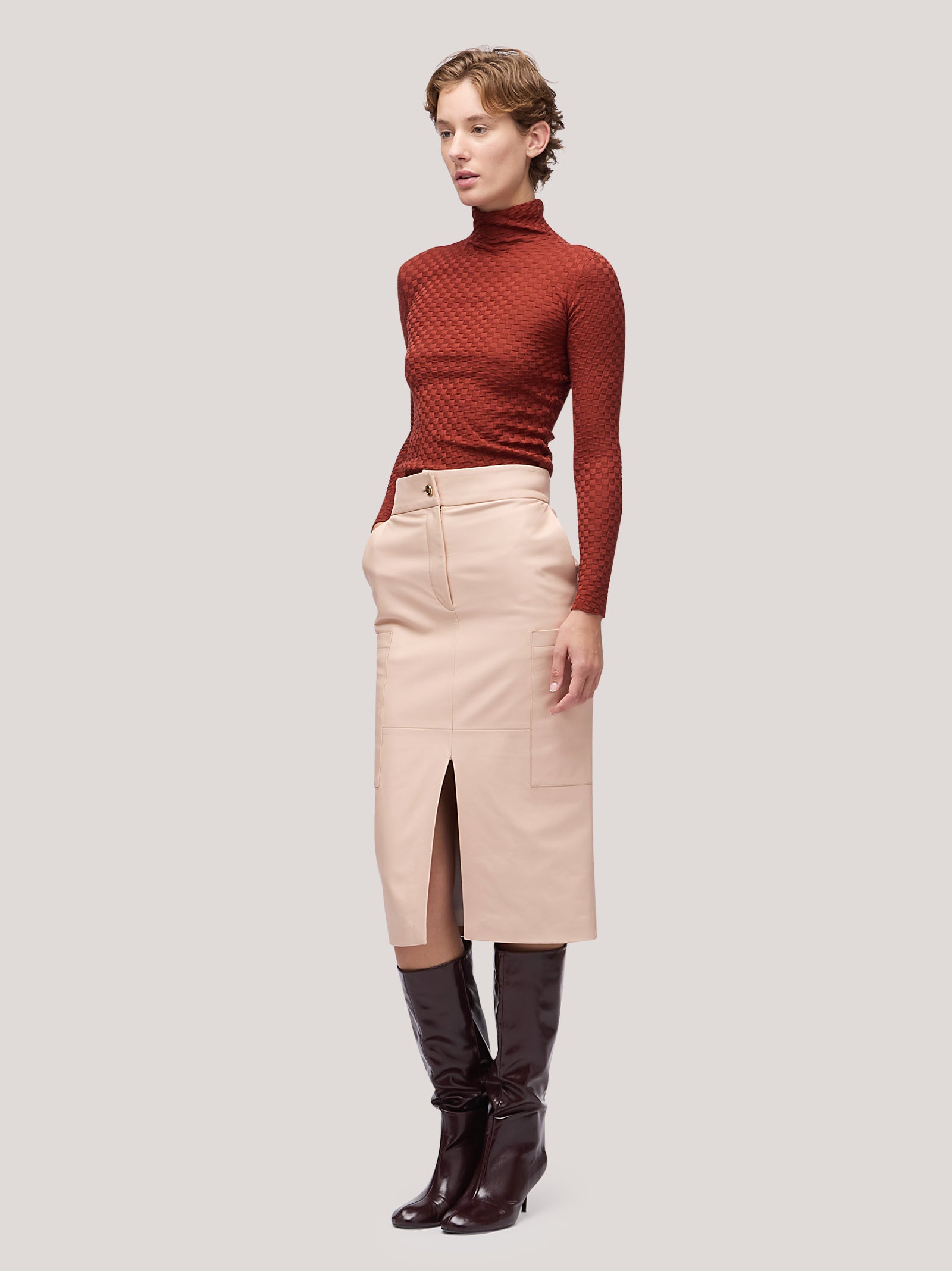 Women's high-neck, long-sleeved sweater, damier workmanship