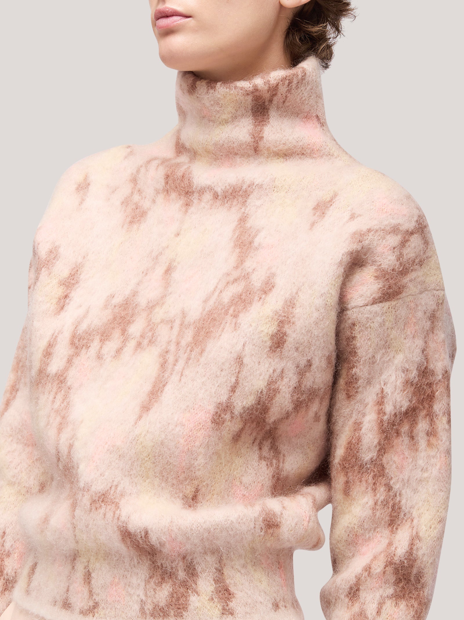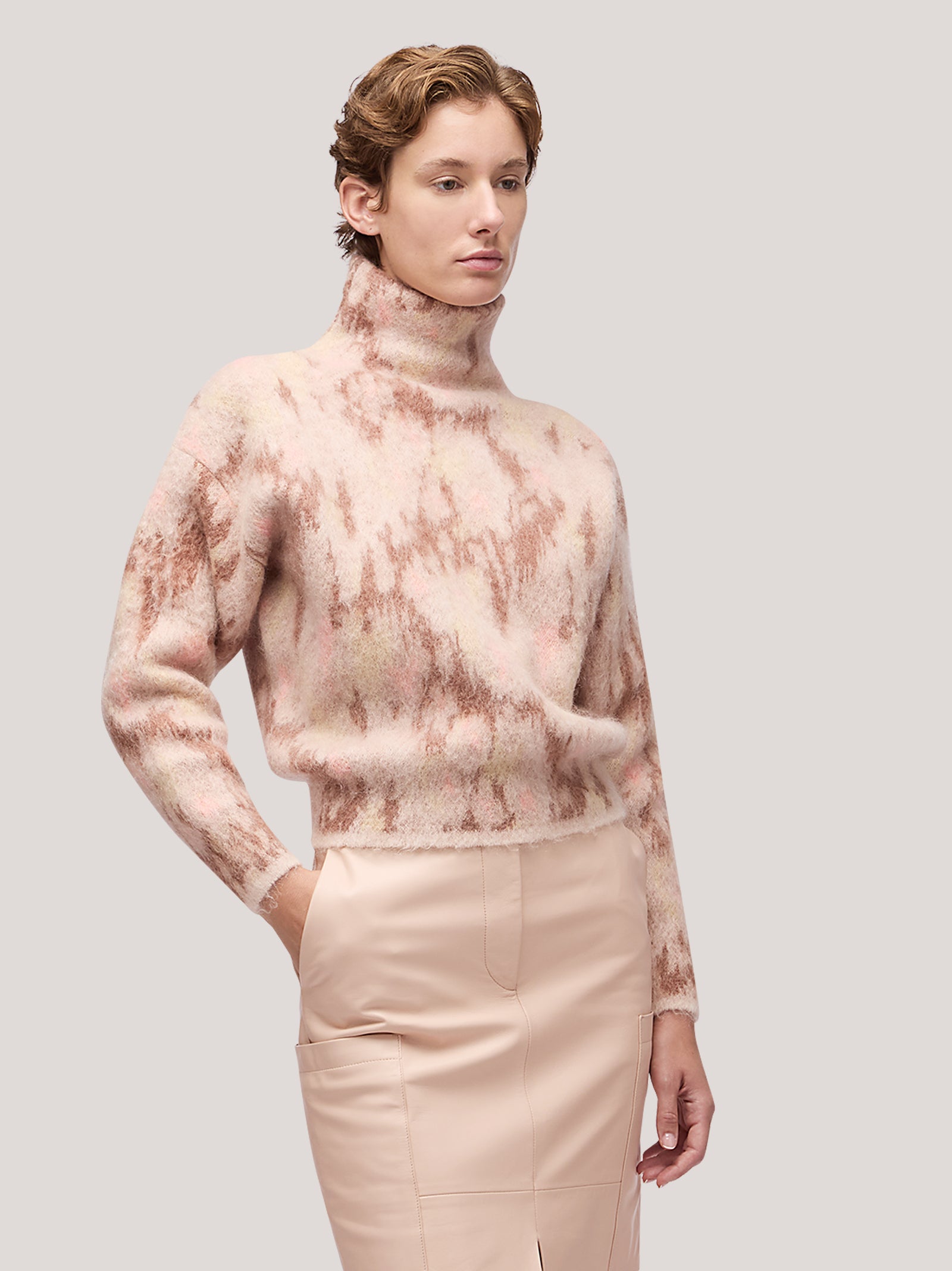 Women's stand-up collar long-sleeved sweater with a combed floral pattern