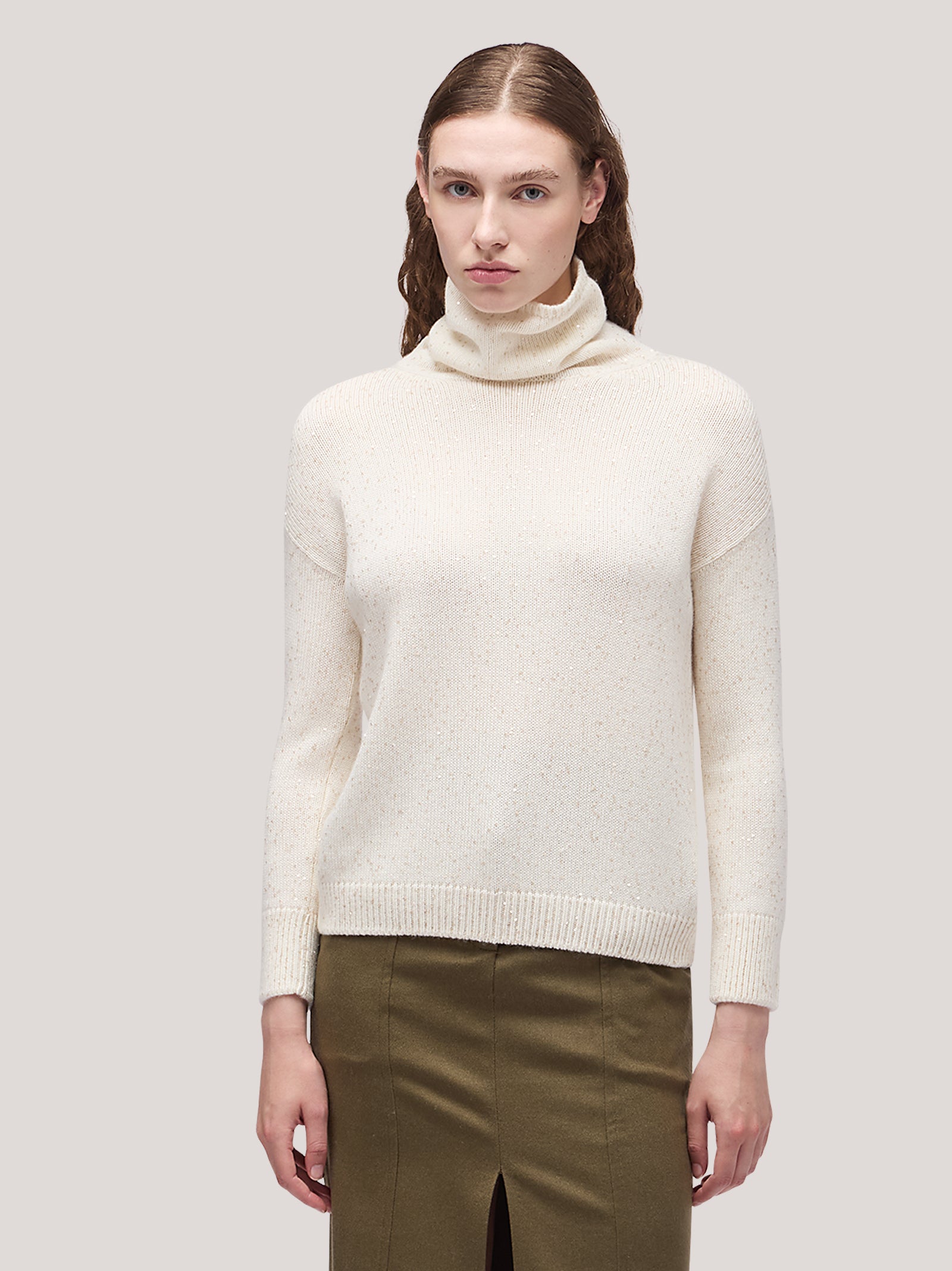 Women's stand-up collar long-sleeved sweater with sequin appliqués