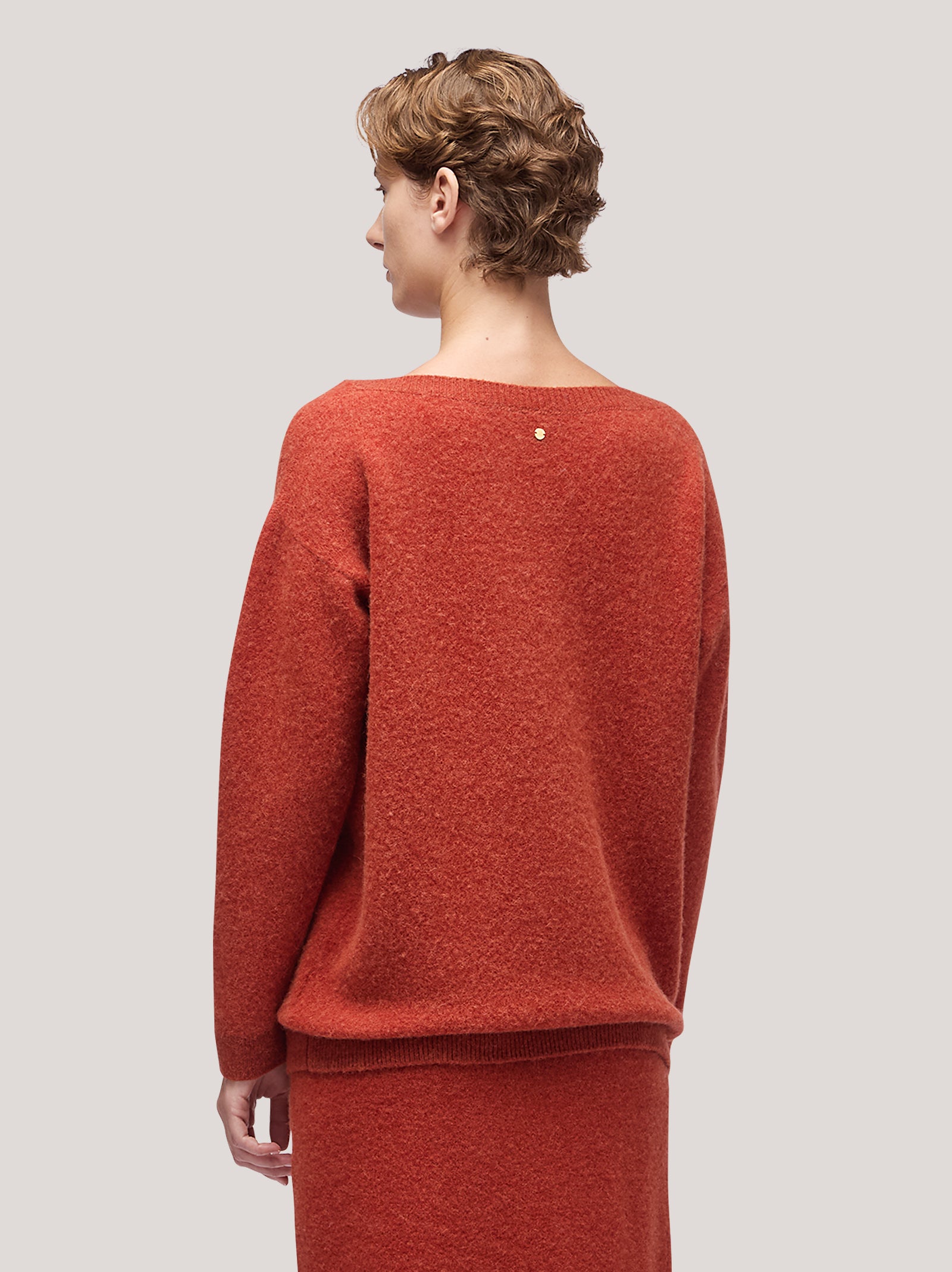 For maximum care and longevity of this garment, we recommend turning it inside out before washing, so that the surfaces of the fibers are delicately rubbed together. We then recommend washing it by hand, with water at around 30° and a neutral detergent, then drying it on a horizontal surface, without using the dryer, then ironing it at low temperature. It will then be important to collect it in the appropriate sealed bag with the addition of a mothproof product.