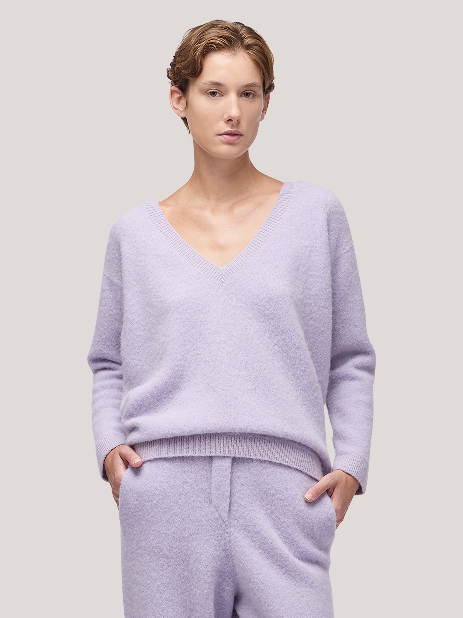 For maximum care and longevity of this garment, we recommend turning it inside out before washing, so that the surfaces of the fibers are delicately rubbed together. We then recommend washing it by hand, with water at around 30° and a neutral detergent, then drying it on a horizontal surface, without using the dryer, then ironing it at low temperature. It will then be important to collect it in the appropriate sealed bag with the addition of a mothproof product.