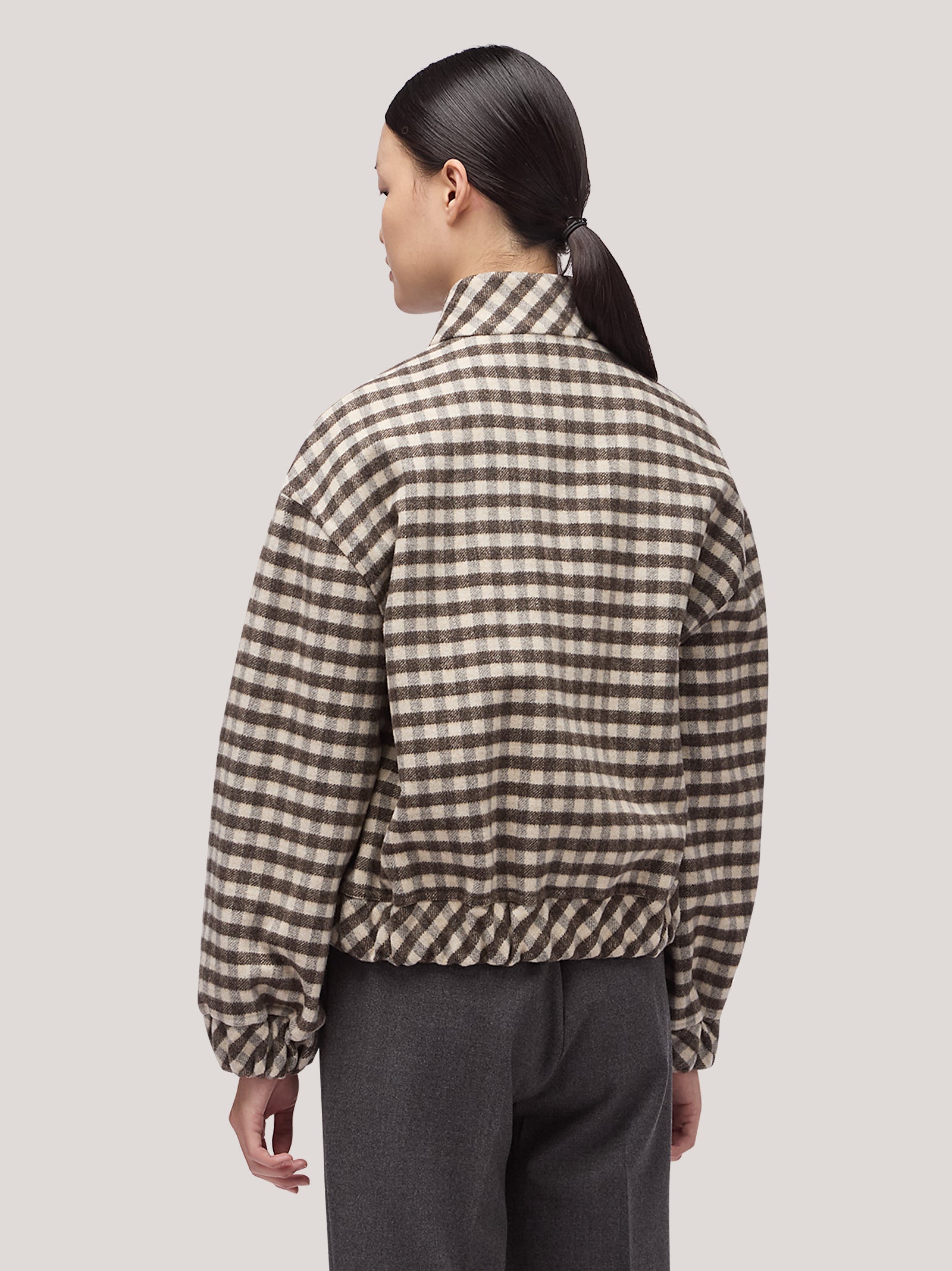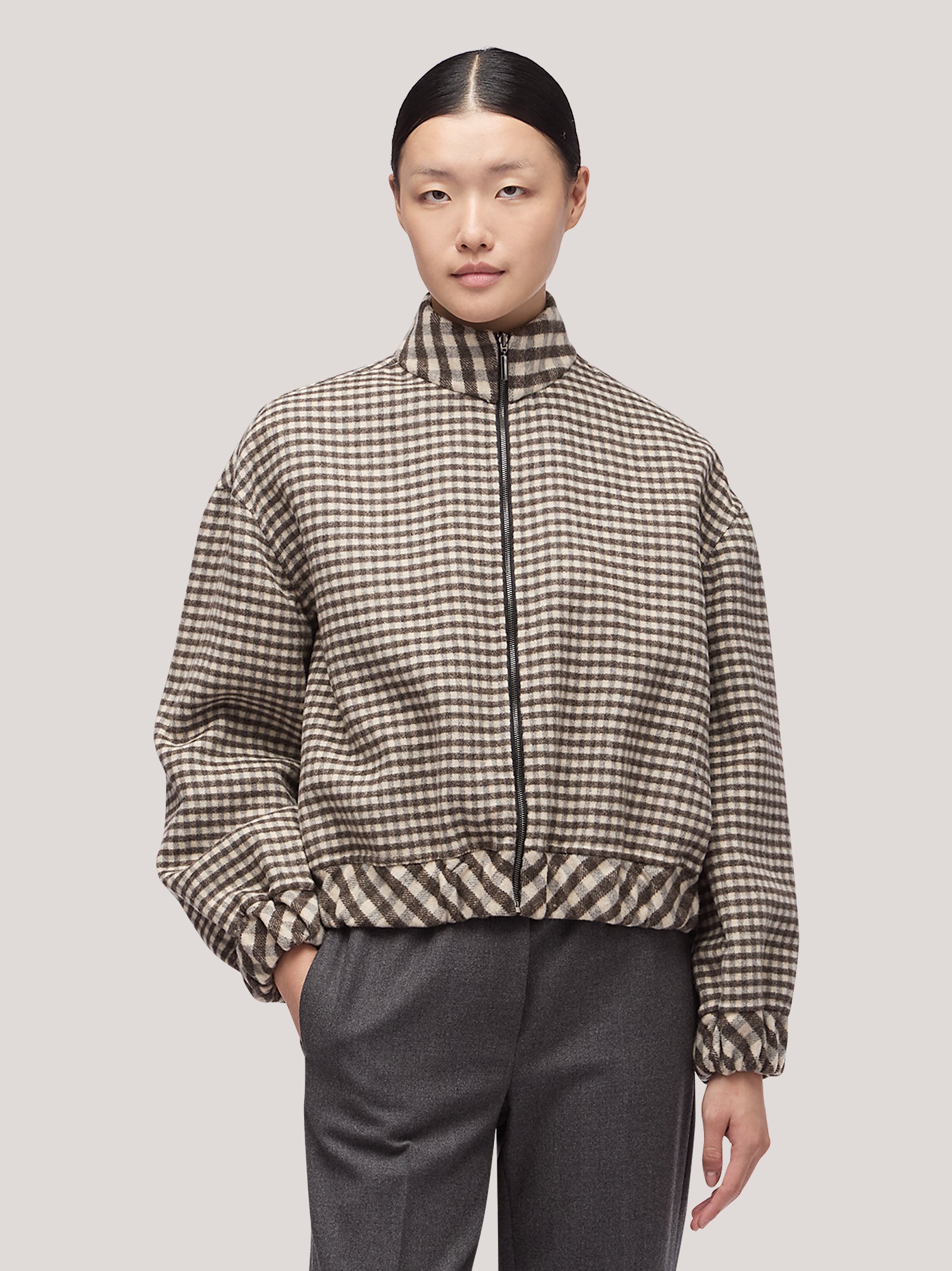 Bomber donna reversibile con collo alto in vichy double