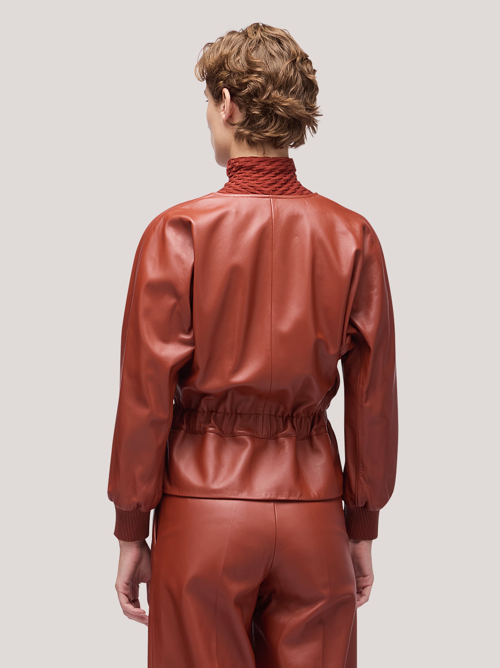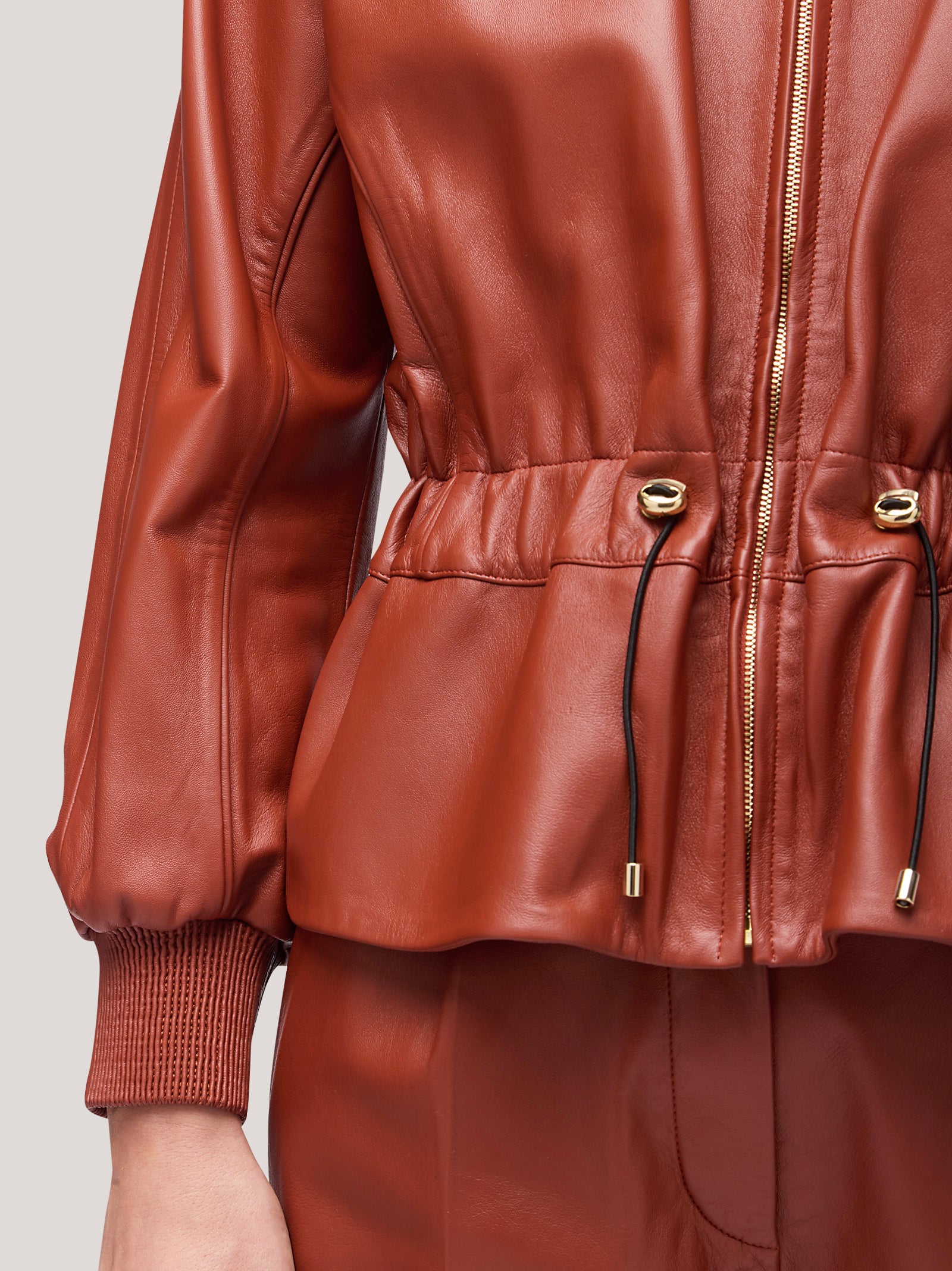 Giacca donna in pelle con coulisse in vita