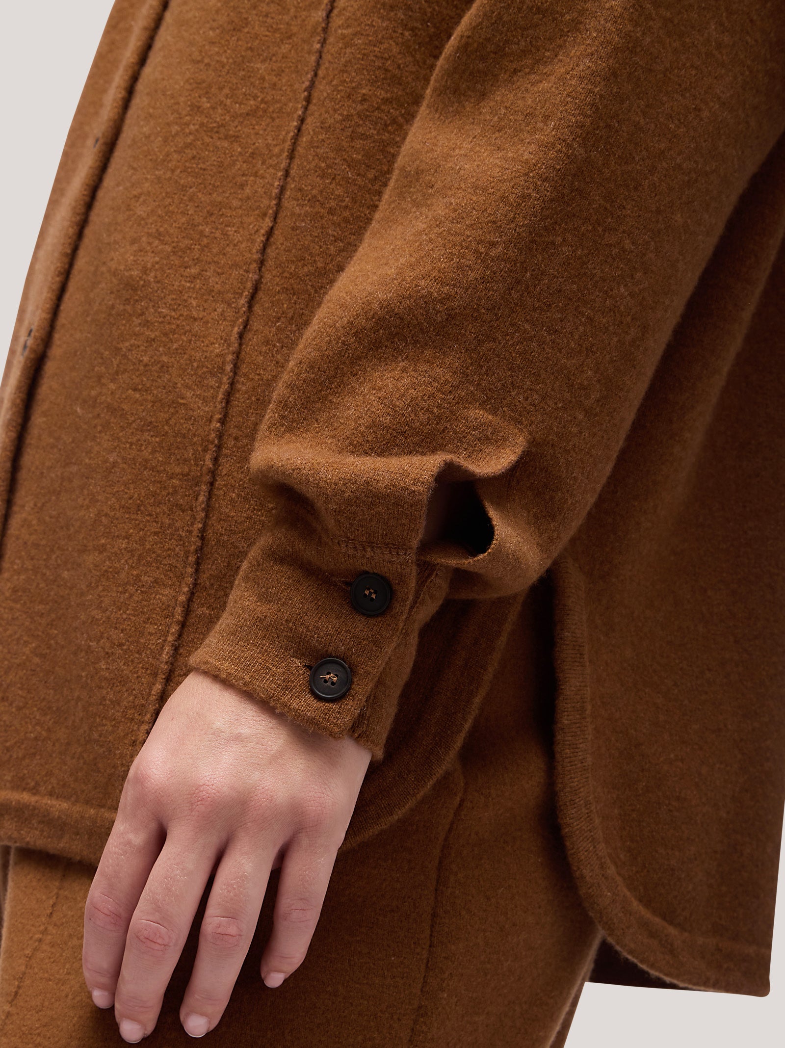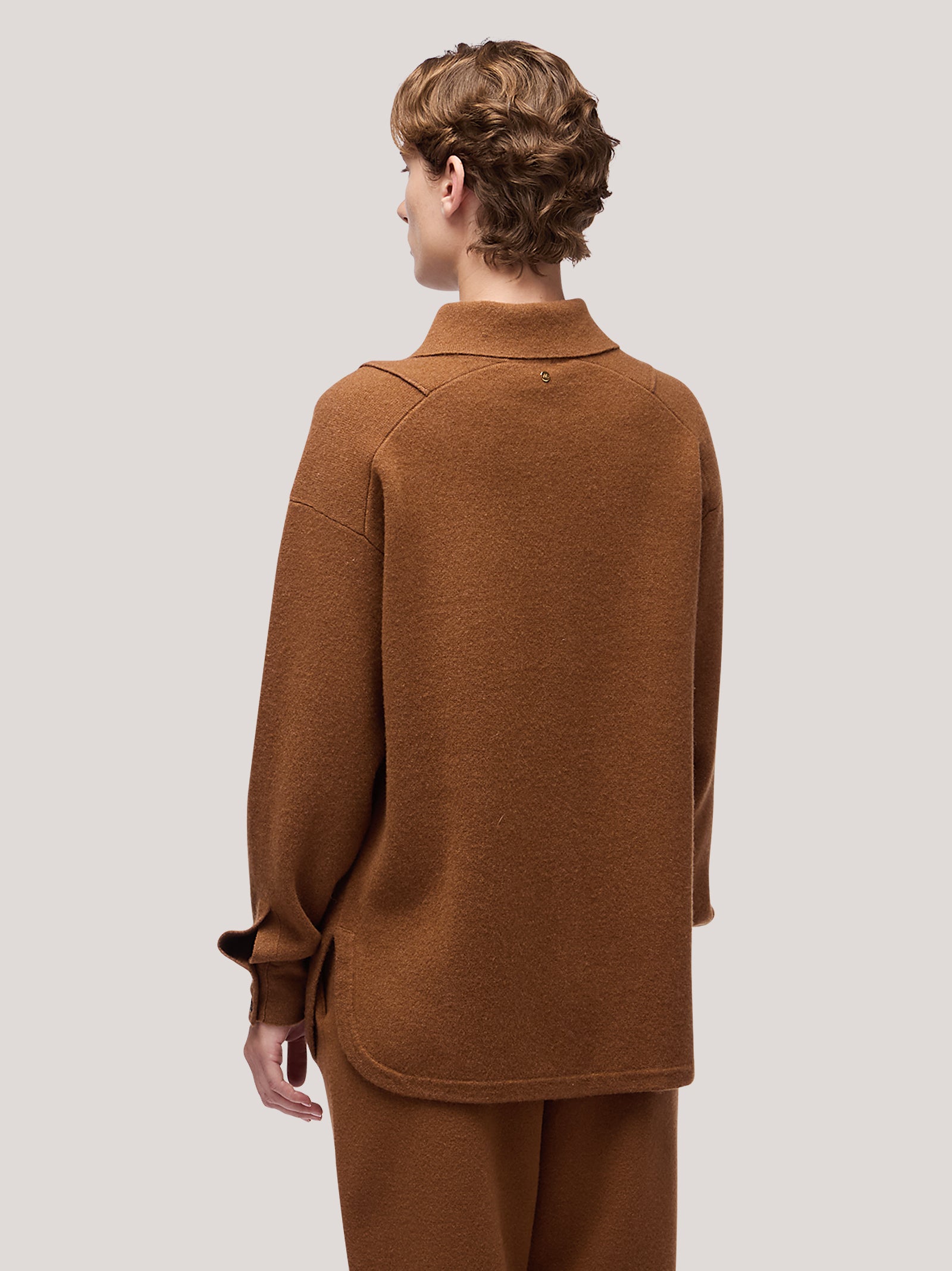 di capovolgerlo prima del lavaggio, in modo tale che le superfici delle fibre subiscano un delicato strofinamento tra loro. Consigliamo poi di lavare a mano, con acqua a 30° circa e un detersivo neutro, per poi asciugarlo su un piano orizzontale, senza usare l'asciugatrice, quindi stirarlo a bassa temperatura.