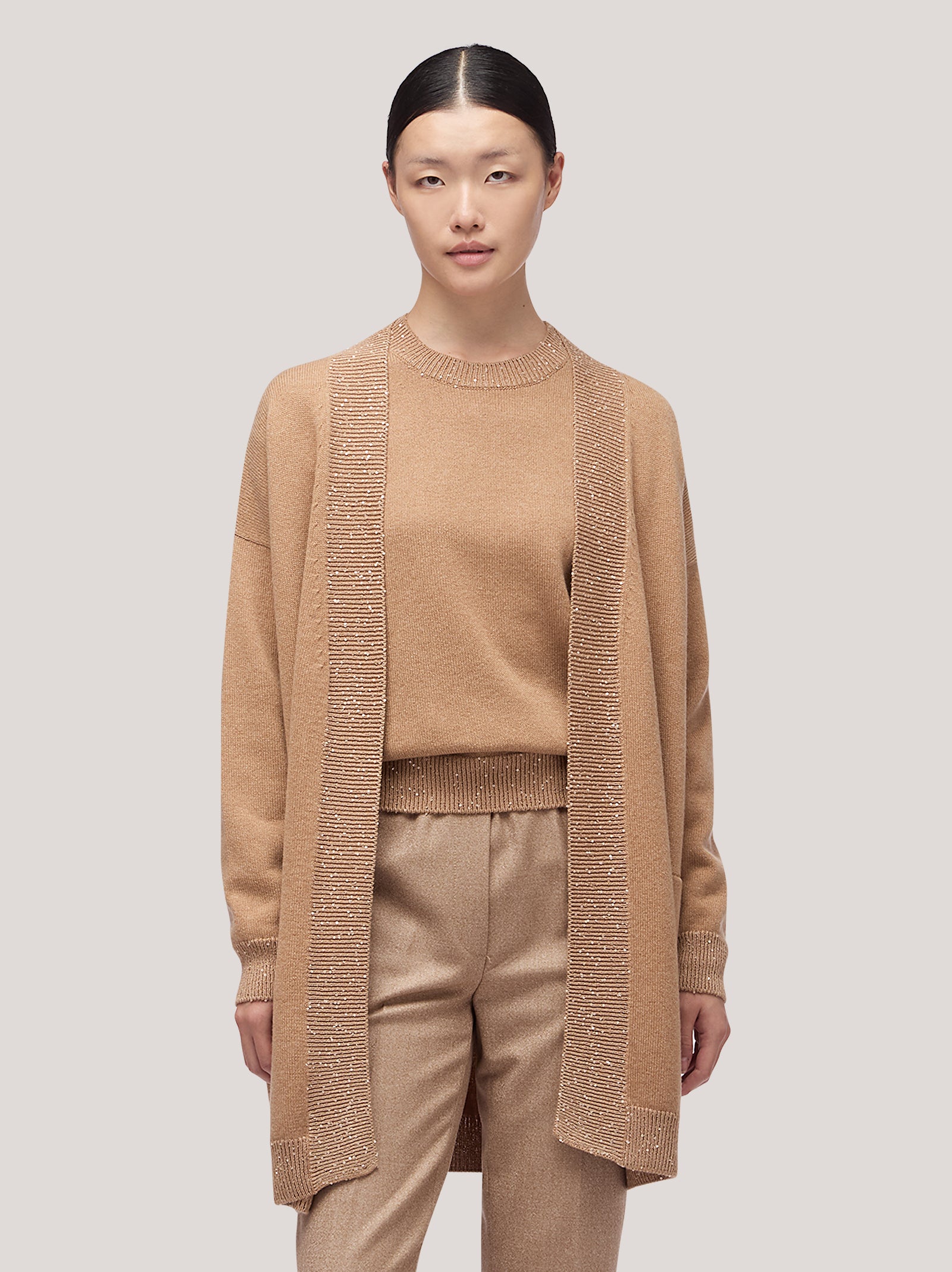Maglia cardigan donna aperto con inserto paillettes su liste