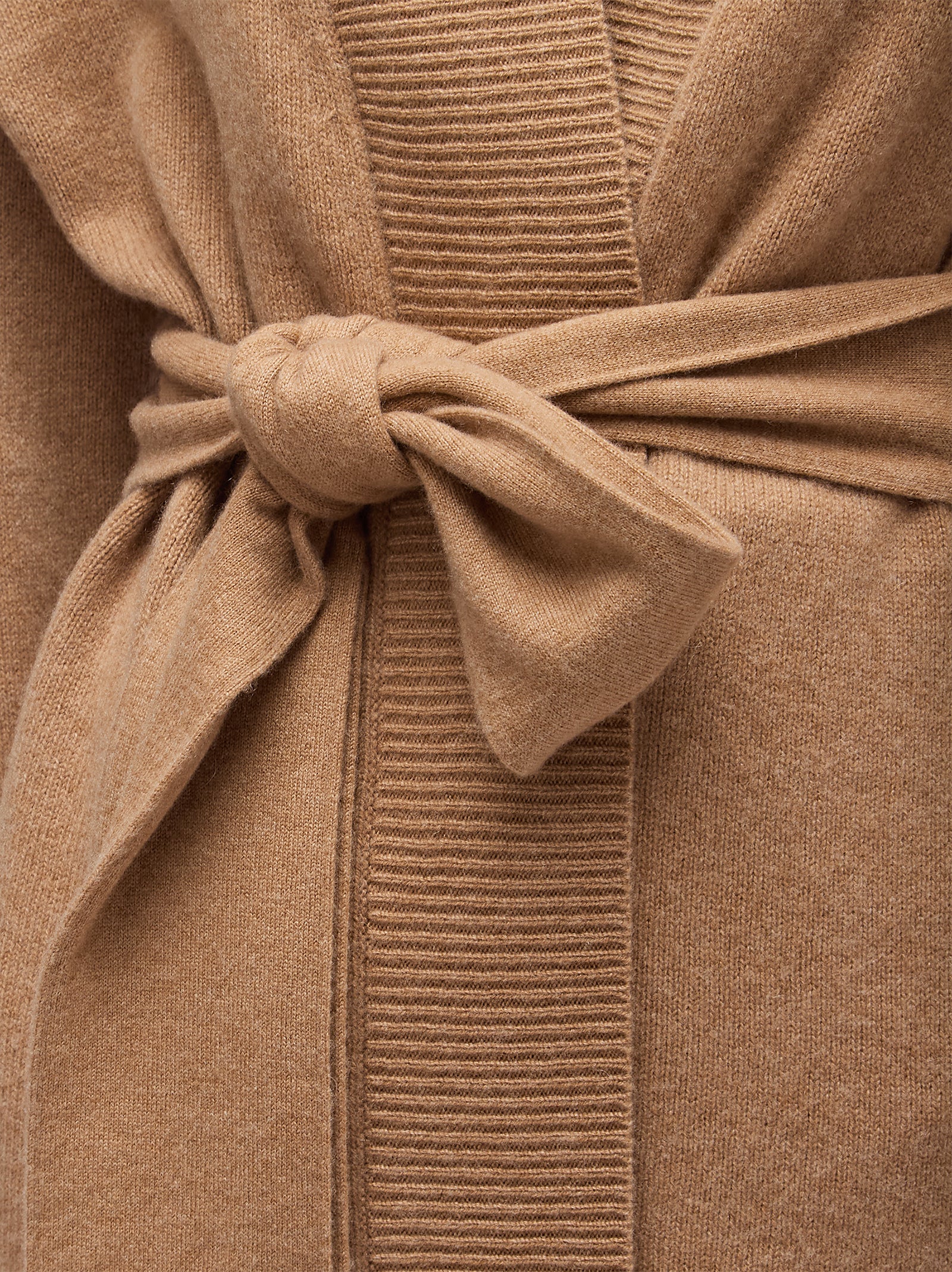 Maglia cardigan donna liste a costa, tasche e cintura, garzato