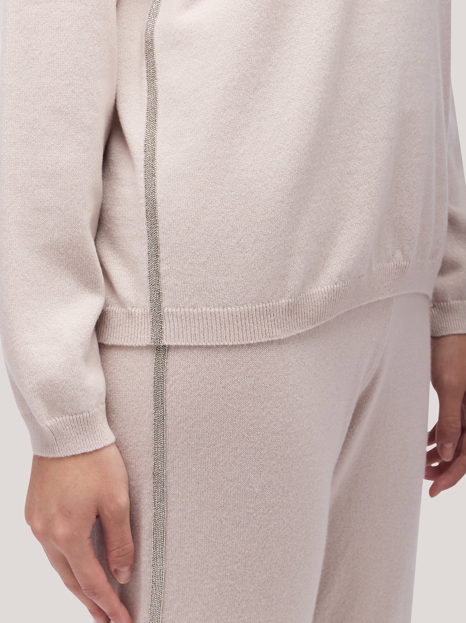 Maglia donna paricollo manica lunga, catenella sul fianco