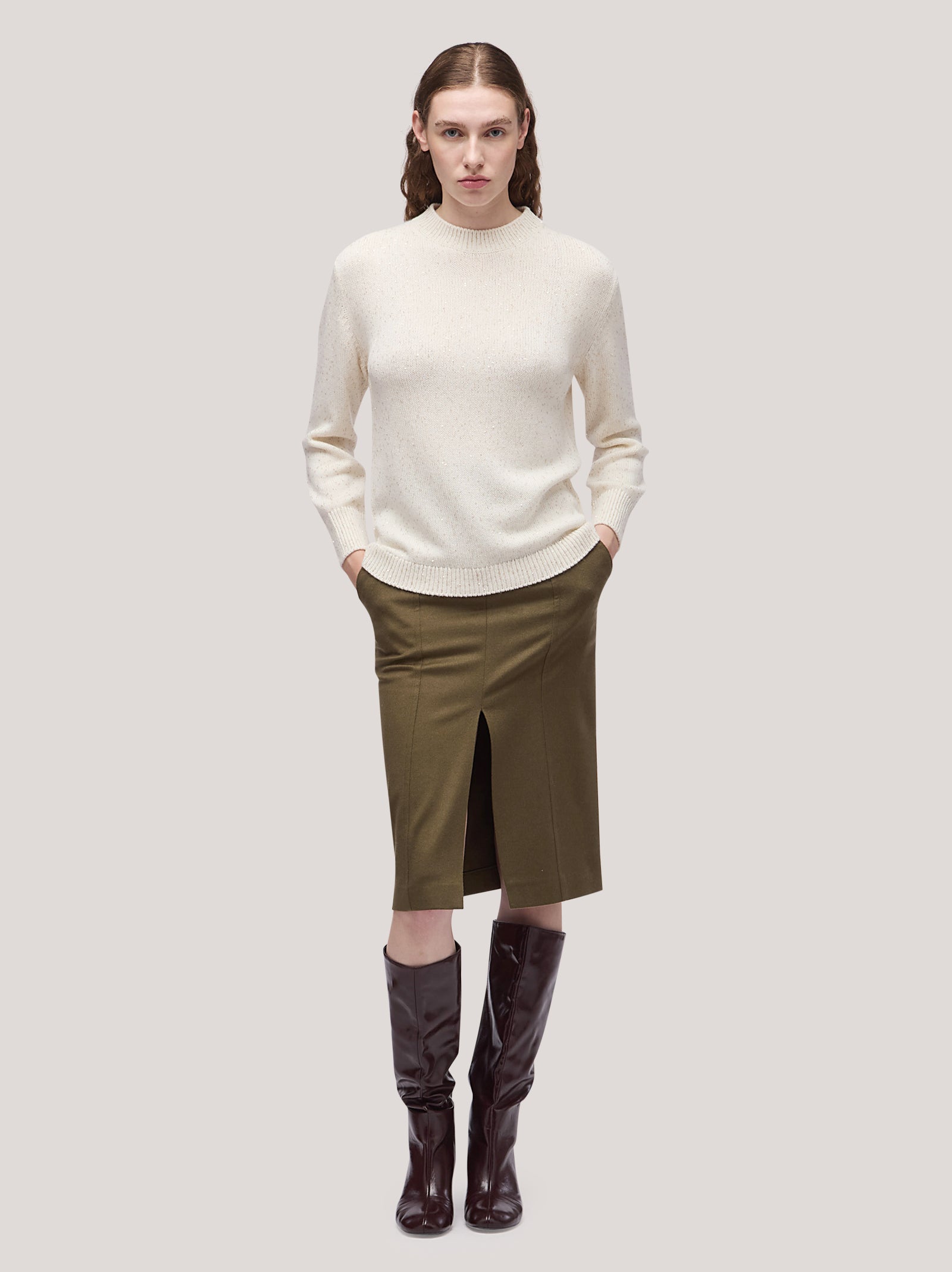 di capovolgerlo prima del lavaggio, in modo tale che le superfici delle fibre subiscano un delicato strofinamento tra loro. Consigliamo poi di lavare a mano, con acqua a 30° circa e un detersivo neutro, per poi asciugarlo su un piano orizzontale, senza usare l'asciugatrice, quindi stirarlo a bassa temperatura.