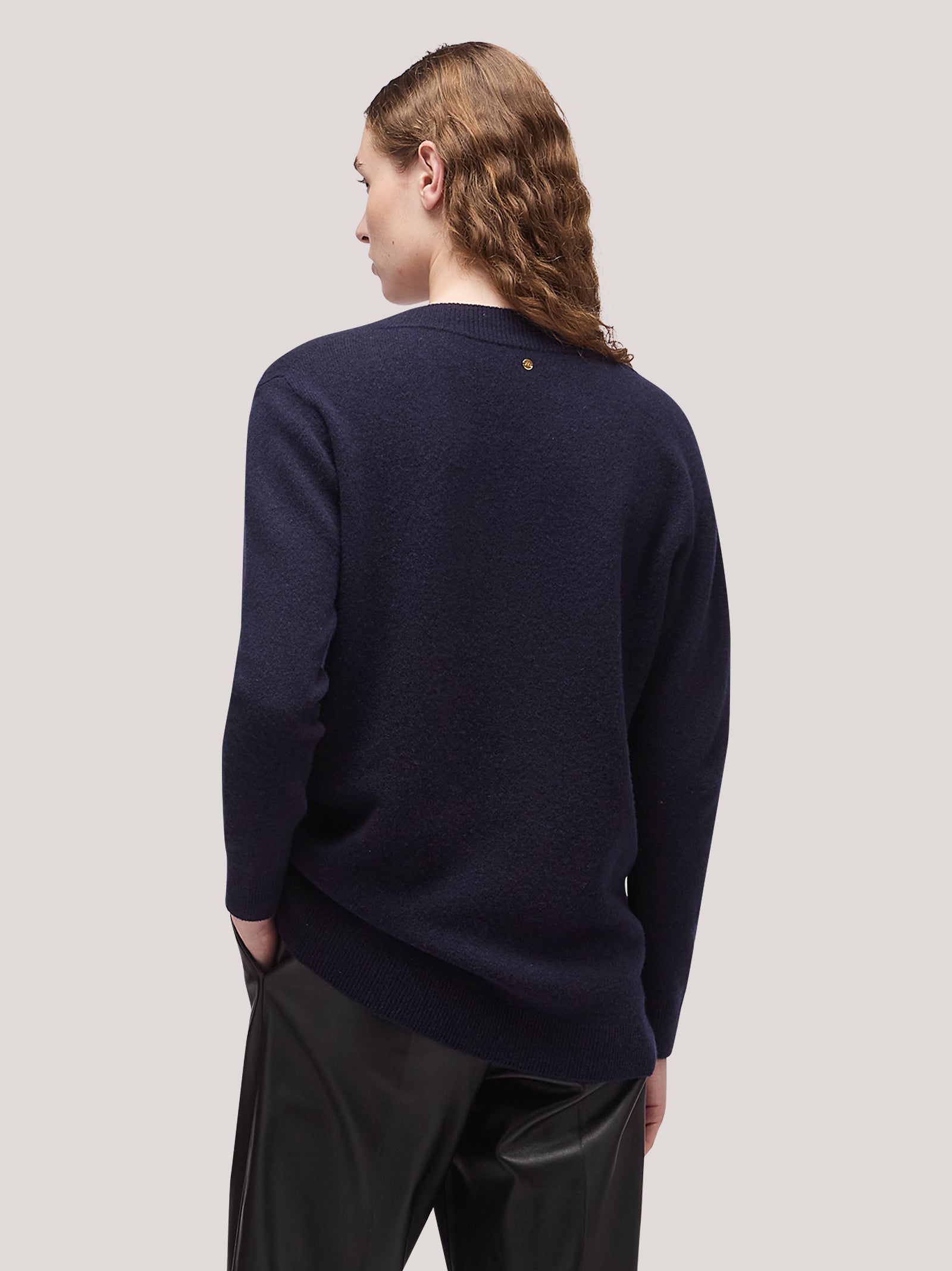 di capovolgerlo prima del lavaggio, in modo tale che le superfici delle fibre subiscano un delicato strofinamento tra loro. Consigliamo poi di lavare a mano, con acqua a 30° circa e un detersivo neutro, per poi asciugarlo su un piano orizzontale, senza usare l'asciugatrice, quindi stirarlo a bassa temperatura.