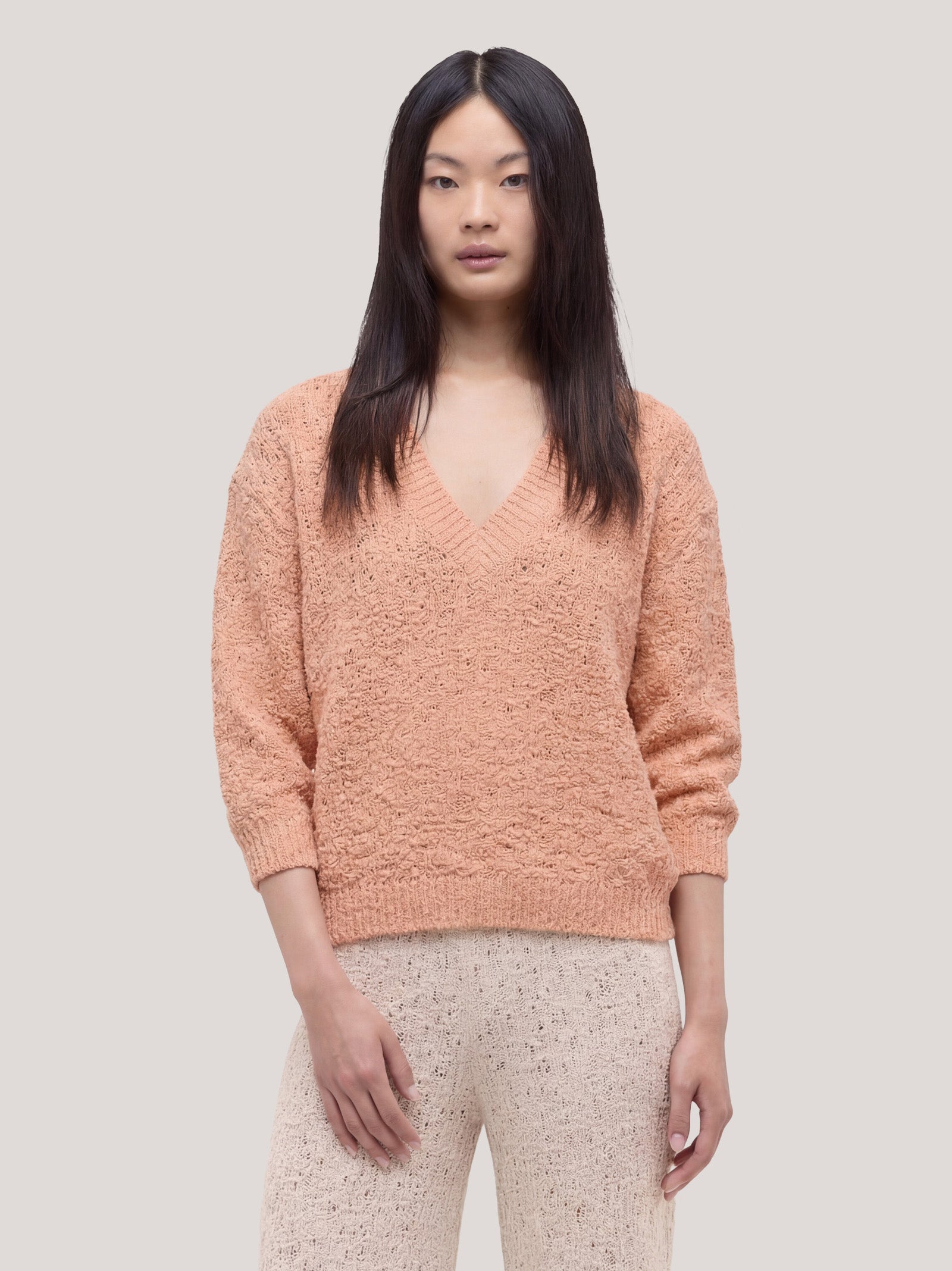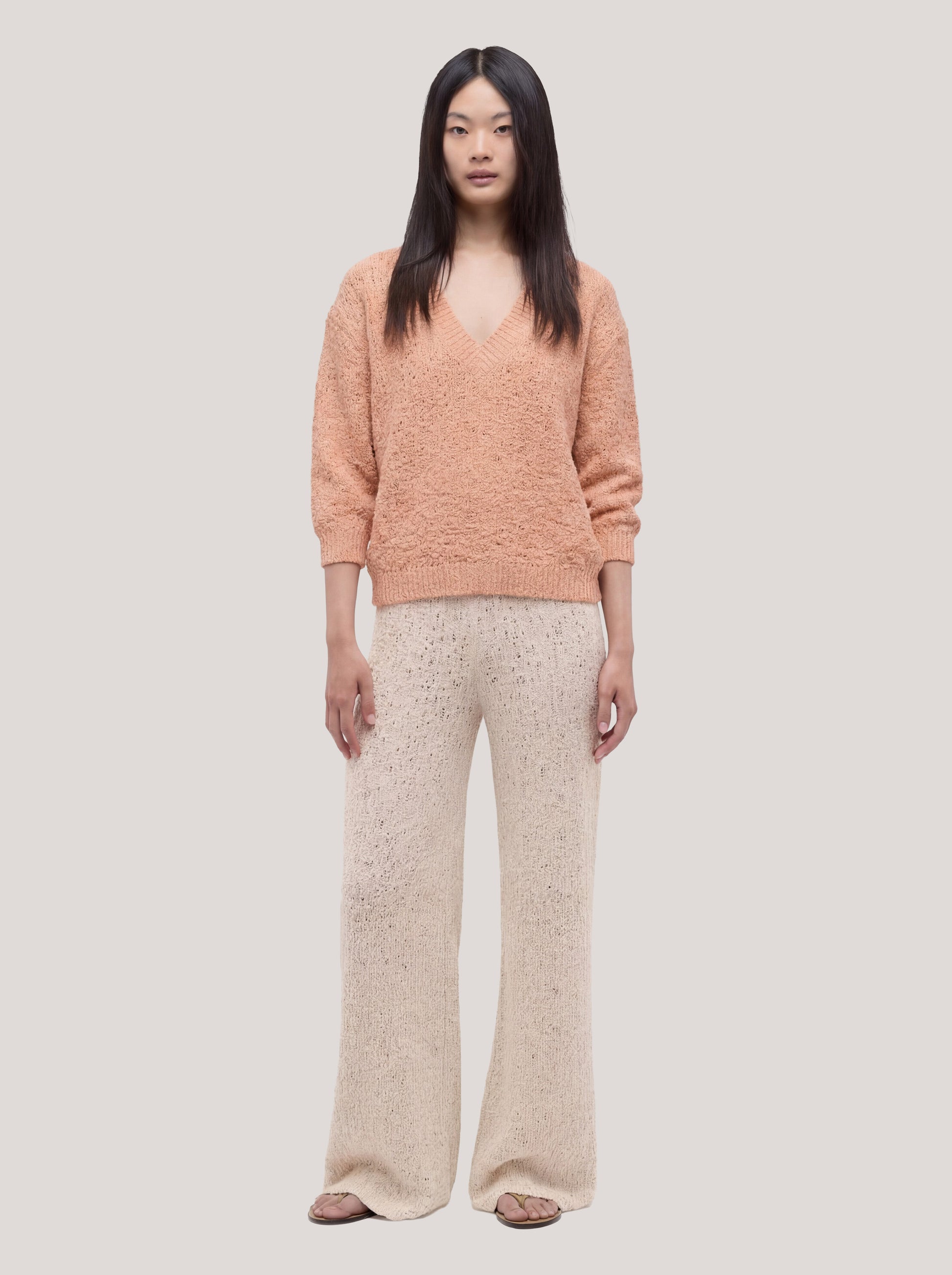 di capovolgerlo prima del lavaggio, in modo tale che le superfici delle fibre subiscano un delicato strofinamento tra loro. Consigliamo poi di lavare a mano, con acqua a 30° circa e un detersivo neutro, per poi asciugarlo su un piano orizzontale, senza usare l'asciugatrice, quindi stirarlo a bassa temperatura.
