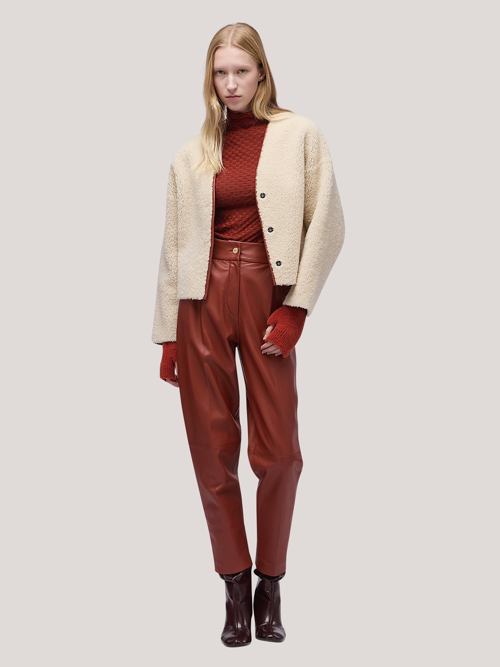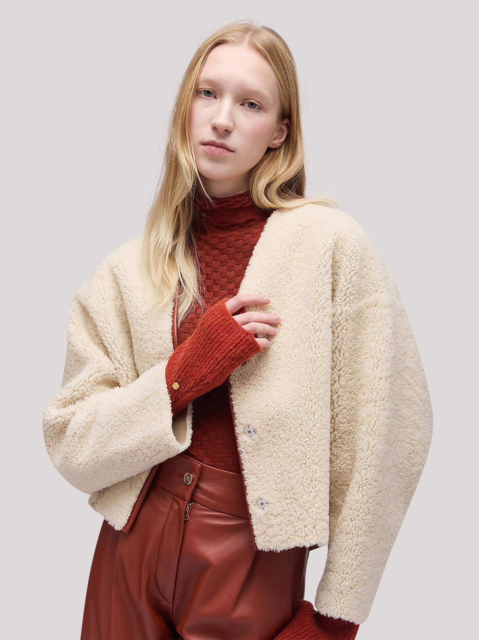 di capovolgerlo prima del lavaggio, in modo tale che le superfici delle fibre subiscano un delicato strofinamento tra loro. Consigliamo poi di lavare a mano, con acqua a 30° circa e un detersivo neutro, per poi asciugarlo su un piano orizzontale, senza usare l'asciugatrice, quindi stirarlo a bassa temperatura.
