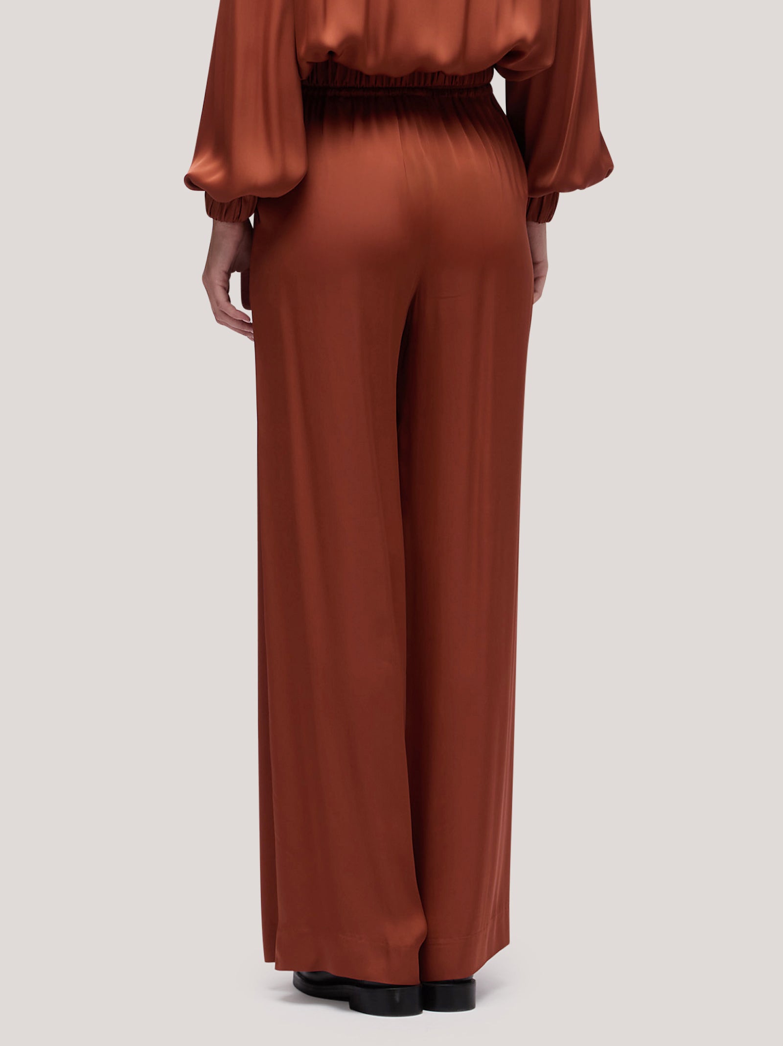 Pantalone donna a palazzo e coulisse in vita effetto satin