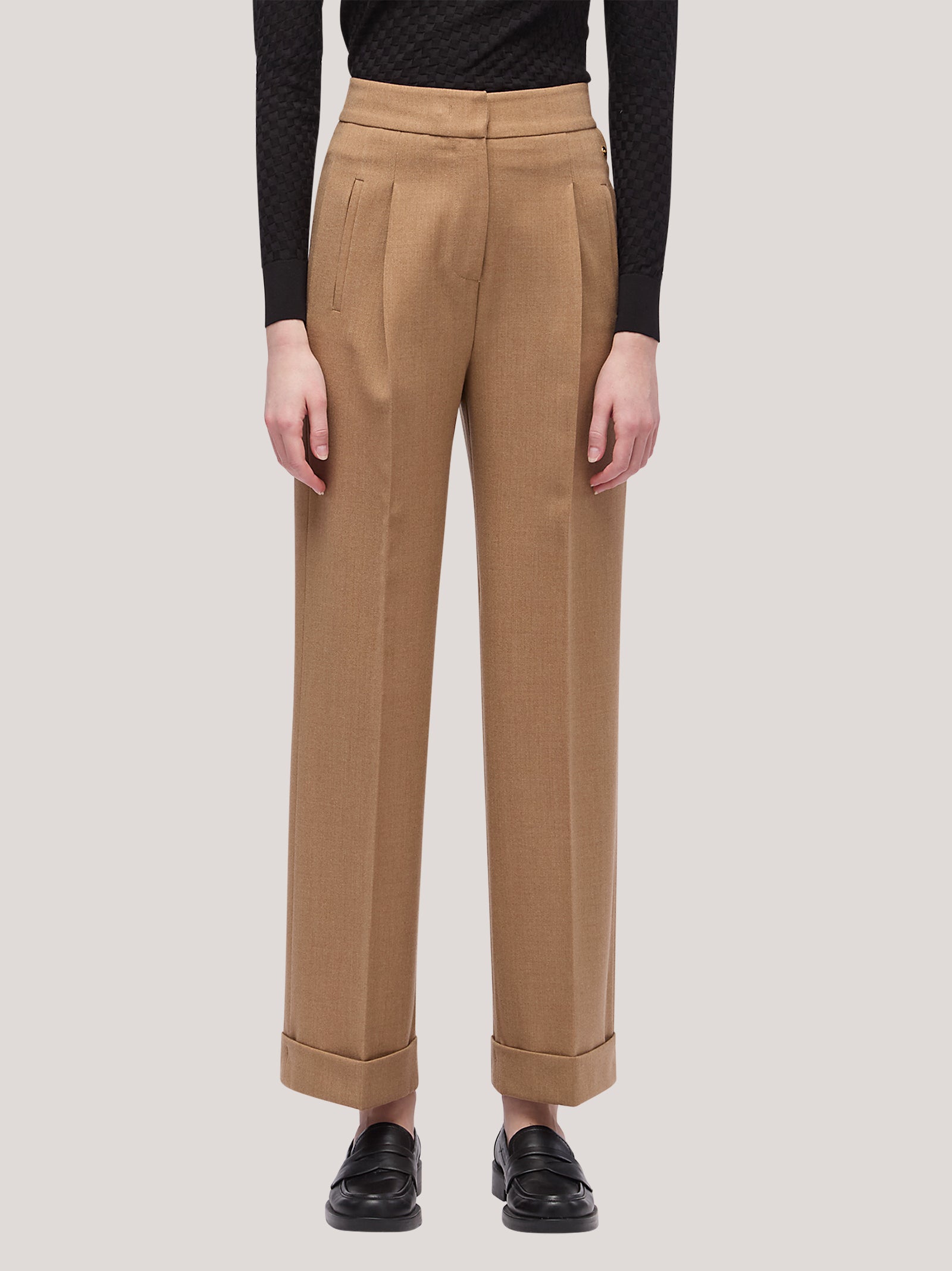 Pantalone donna in flanella a palazzo con risvolto
